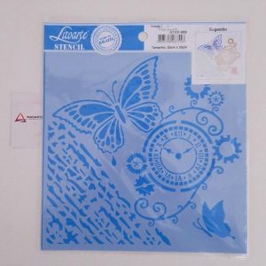 STENCIL LITOARTE| BORBOLETA E RELÓGIO 20X20CM