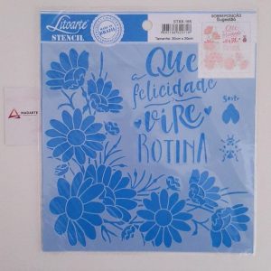STENCIL LITOARTE| MARGARIDAS CANTO E FRASE 20X20CM