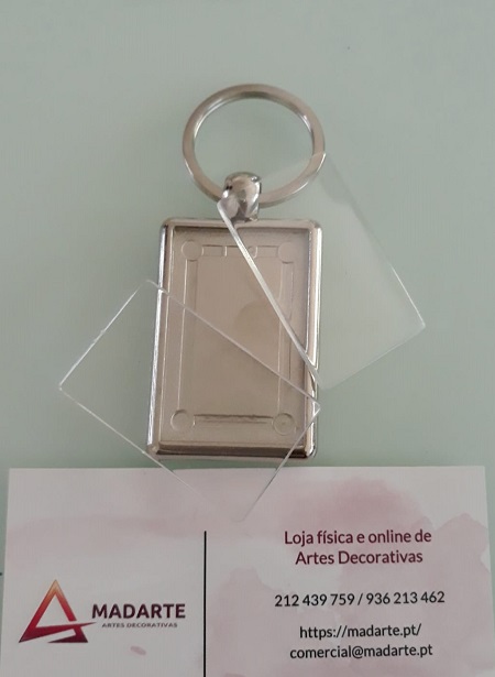 Quantidade de PORTA-CHAVES DE METAL RECTANGULAR COM 2 FACES EM ACRILICO 4X2.5CM