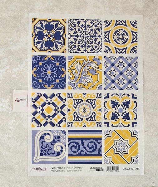 CADENCE | PAPEL DE ARROZ- AZULEJOS AZUL E AMARELO 30X41CM