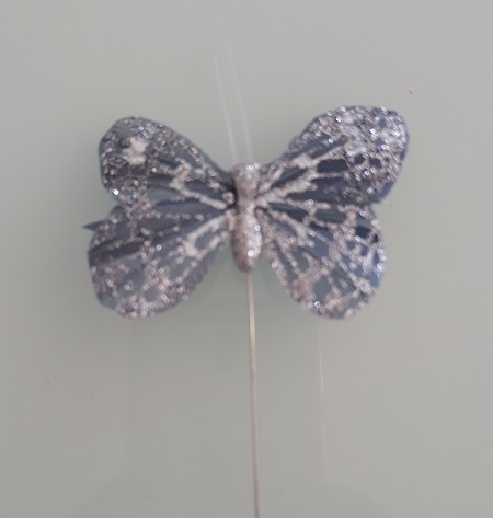 BORBOLETA PRATEADA COM GLITTER 6 CM