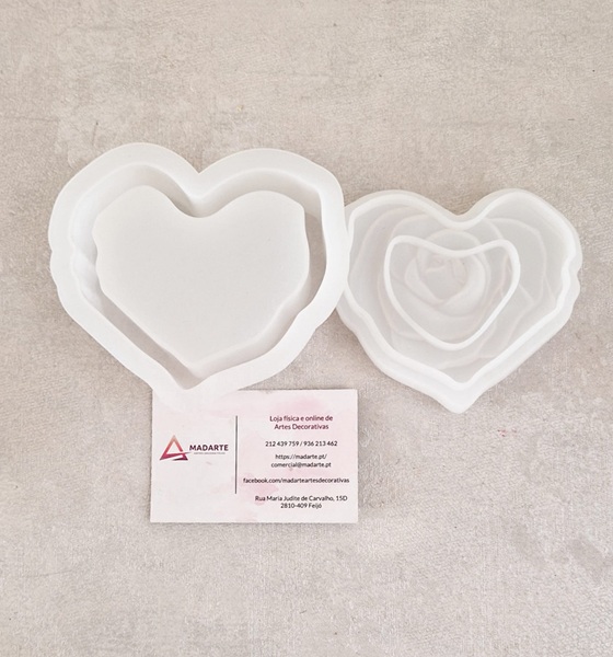 MOLDE DE SILICONE| GUARDA JOIAS CORAÇÃO COM FLOR NA TAMPA 10CM DIAM. X 5.5CM ALT.