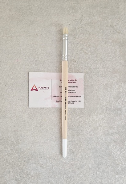 Pincel para stêncil com cerdas redondas e pontas arredondadas, ideal para trabalhos com stêncil.