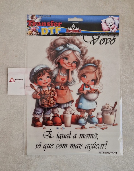 Transfer DTF, é uma nova tecnologia de transferência de imagem para tecidos de qualquer tipo e cor, e agora também pode ser utilizado e retirado à frio, com  a MaxxiCola  e impermeabilizado com o Verniz VitraLux, ambos da Projetec Design.  Pode também ser utilizado em madeira, MDF Cru ou lacado de qualquer cor.  Transferência rápida por calor, com a utilização de ferro de engomar ou prensa térmica.  Rápida transferência sem a necessidade de acabamentos posteriores.